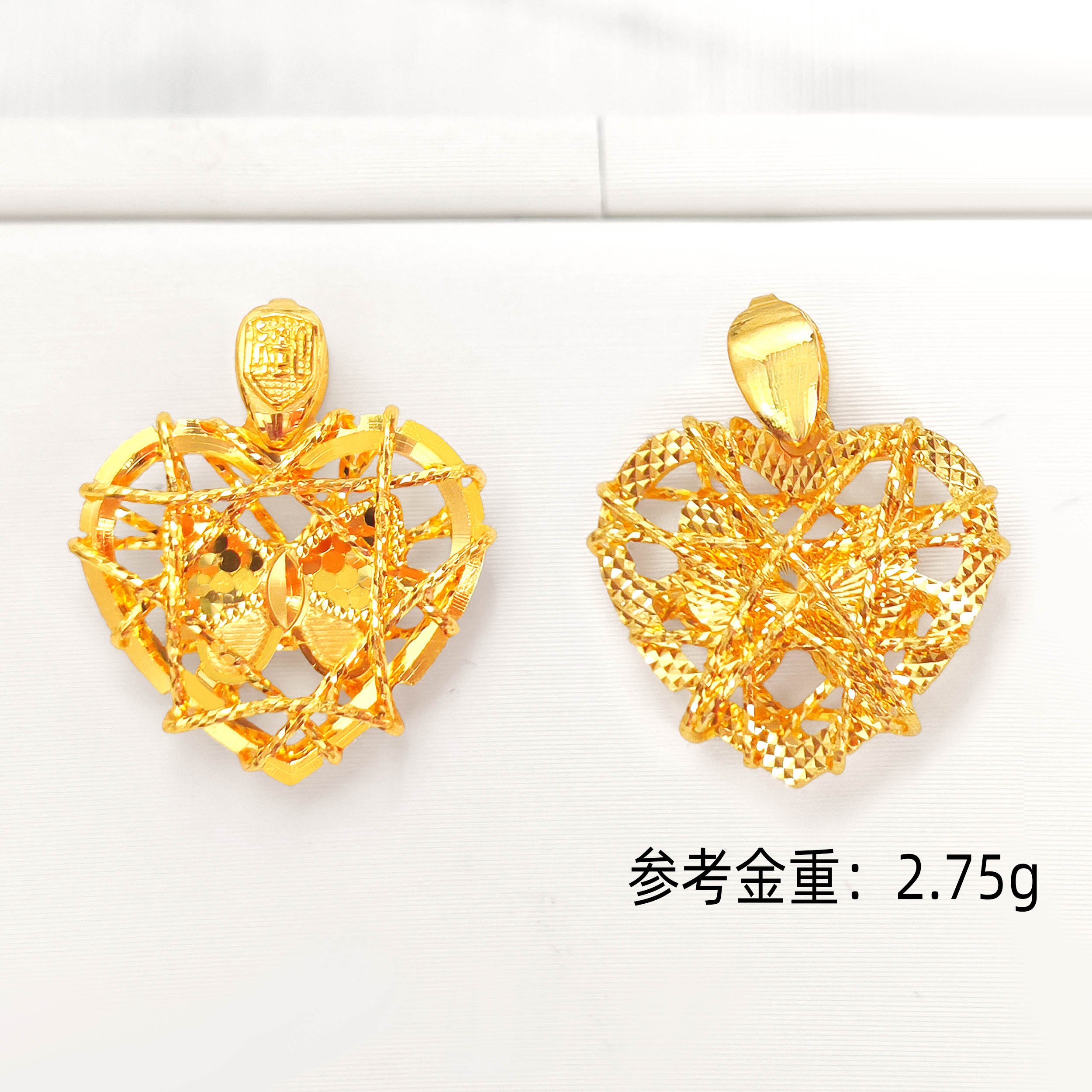 素金爱心蝴蝶碎碎金CNC吊坠